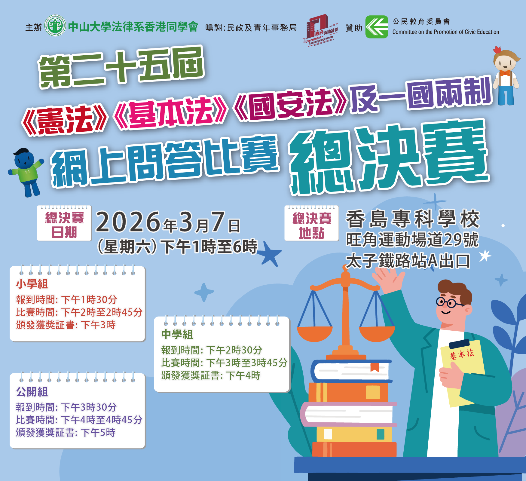中山大學法律系香港同學會舉辦, 公民教育委員會贊助, 「第二十五屆《基本法》及 國民常識 網上問答比賽」。希望通過互聯網的廣泛接觸, 令更多香港市民, 尤其是青少年認識及關心基本法。